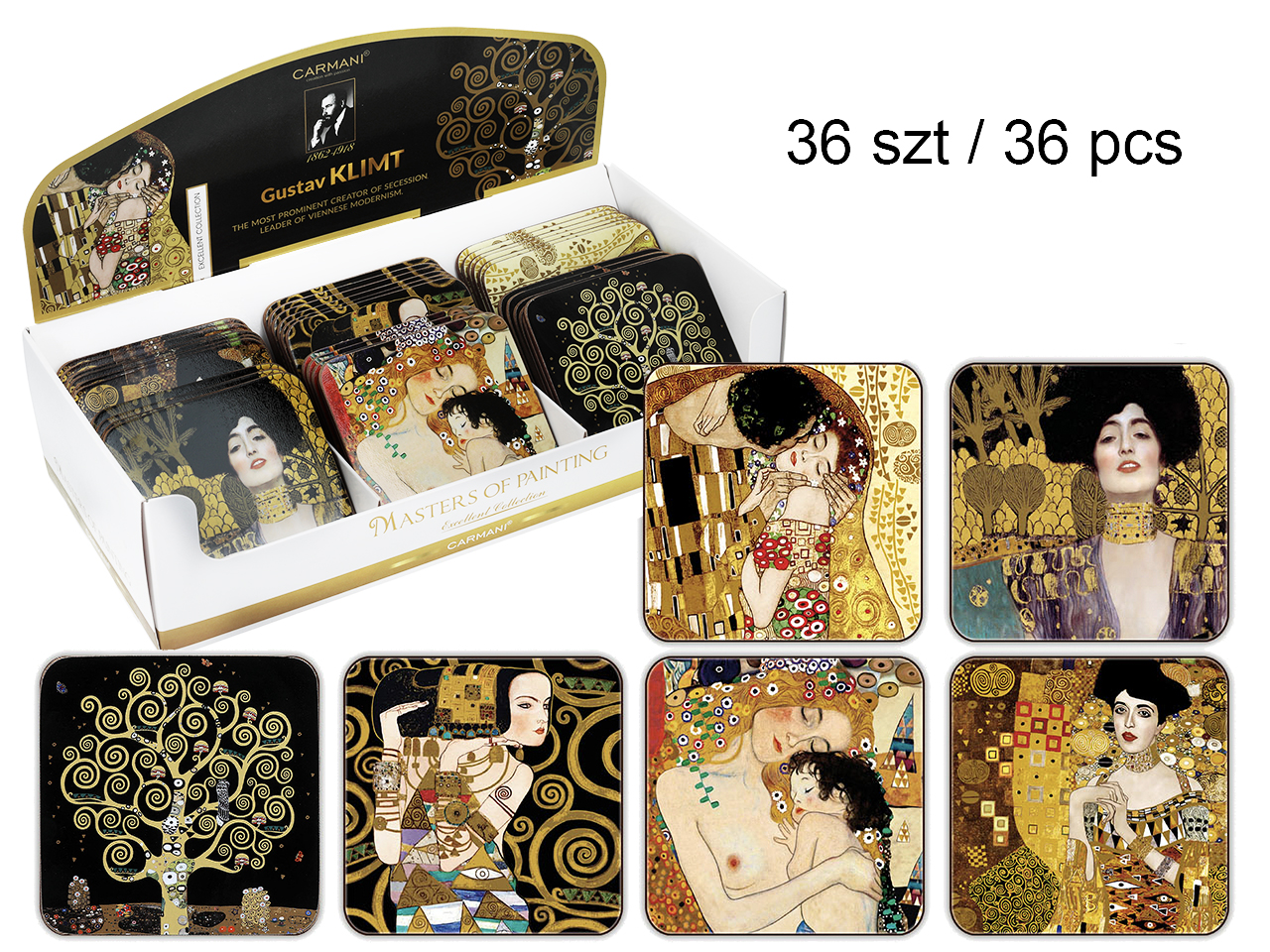 Zestaw 36 podkładek korkowych inspirowane twórczością Gustawa Klimta łączą w sobie funkcjonalność z artystycznym wyrazem. Wykonane z naturalnego korka, są nie tylko ekologiczne, ale także dodają uroku każdemu wnętrzu.