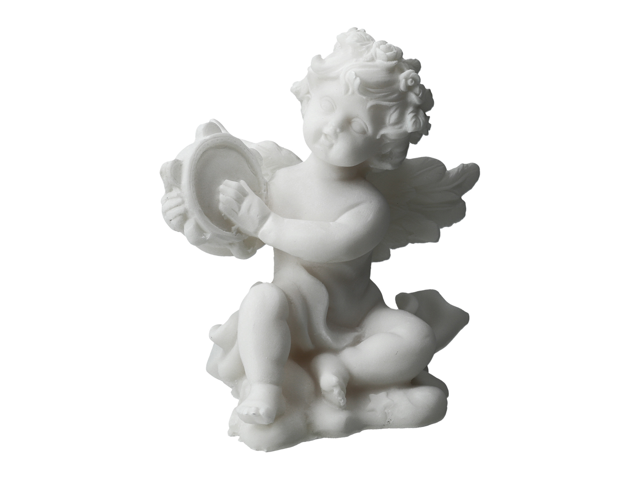 Alabastrowa figurka przedstawiająca aniołka grającego na tamburynie. Już od czasów starożytnych alabaster był wysoko cenionym kamieniem ozdobnym i dekoracyjnym. Niezliczona ilość wzorów stanowi inspirację do tworzenia własnych niepowtarzalnych