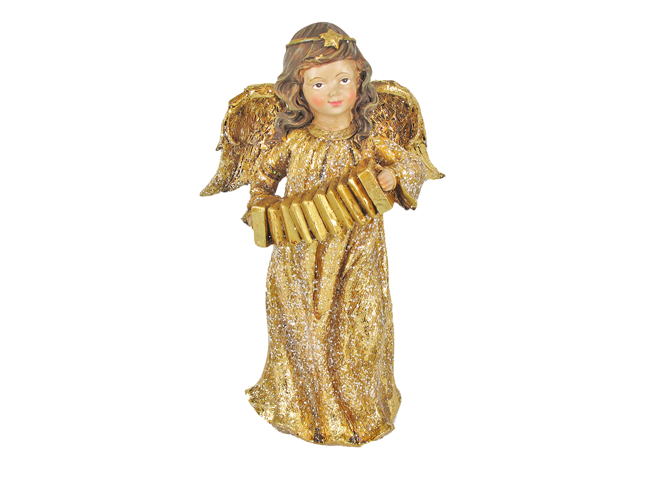 Urokliwy aniołek w złotej szacie grający na akordeonie. Urozmaici każde wnętrze.