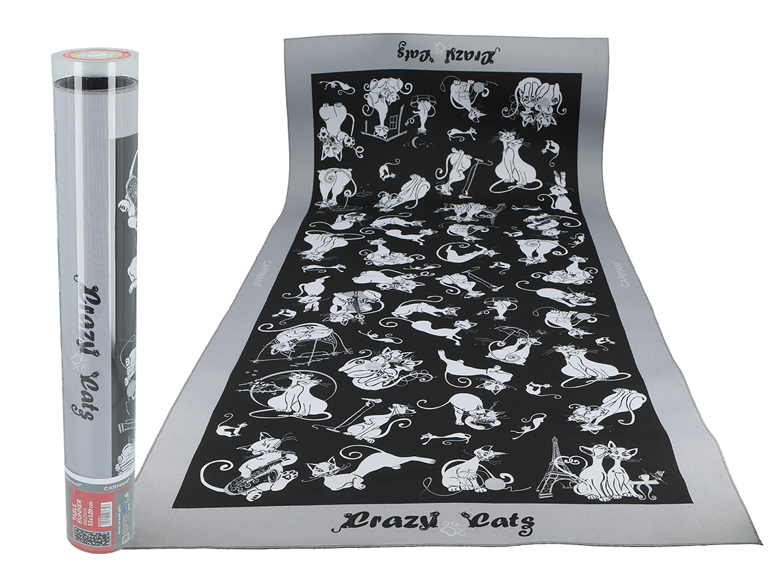 Bieżnik na stół (szeroki) – Koci świat, czarne tło (CARMANI)