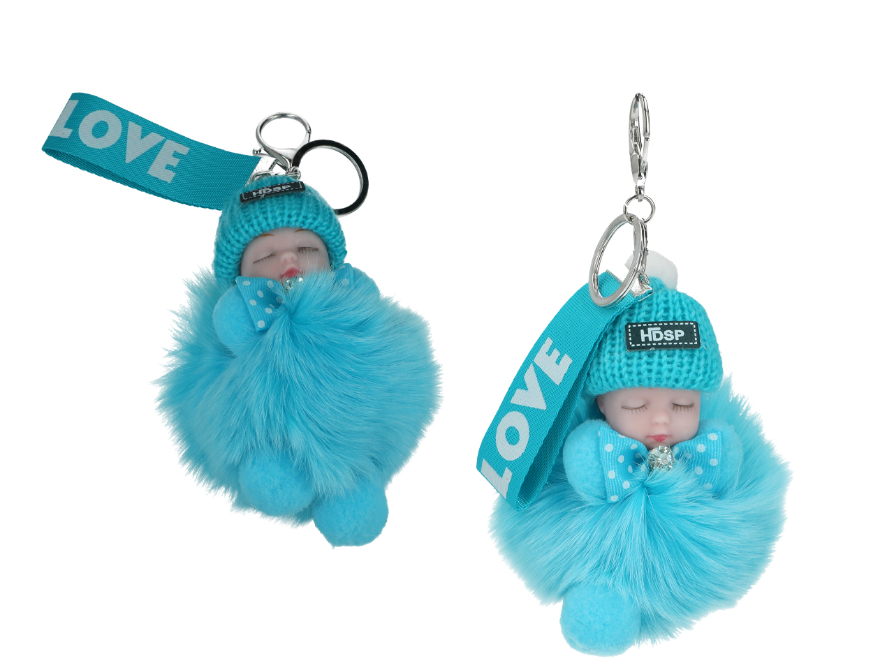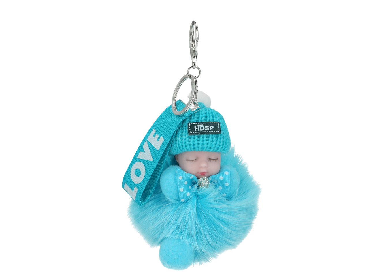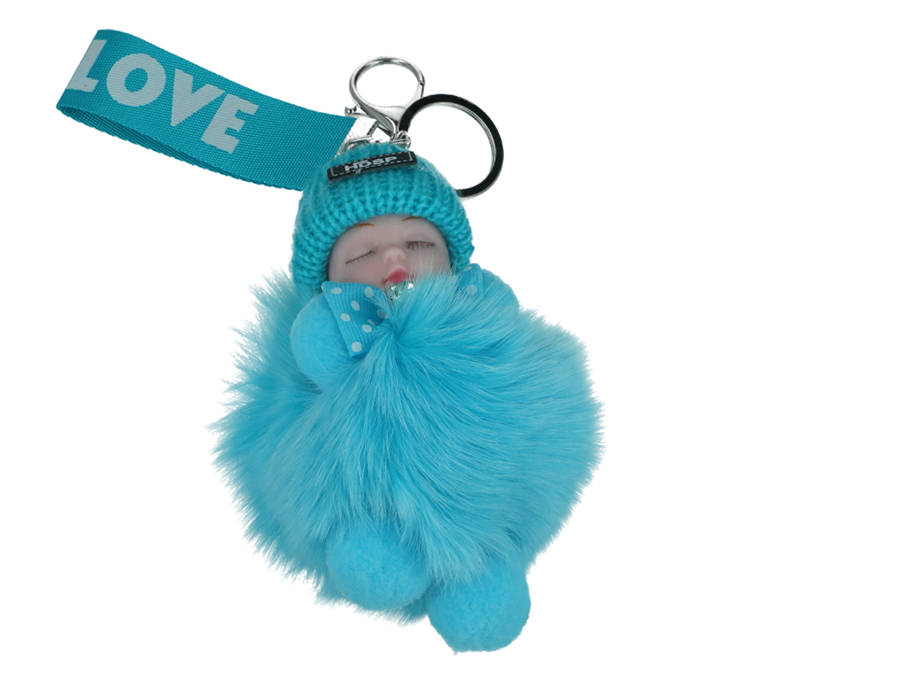 Breloczek do kluczy – Niemowlak, turkusowy pompon