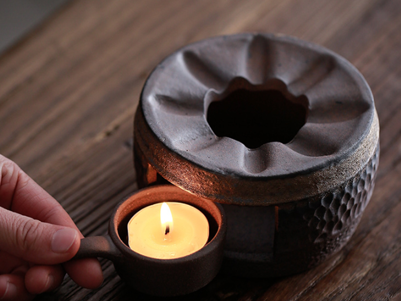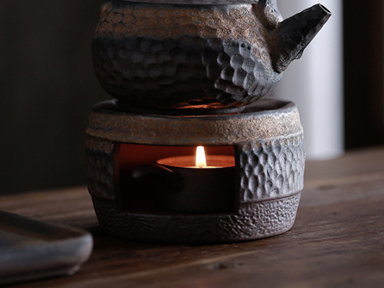 Podgrzewacz, na którym możemy podgrzać czajnik lub miseczki.