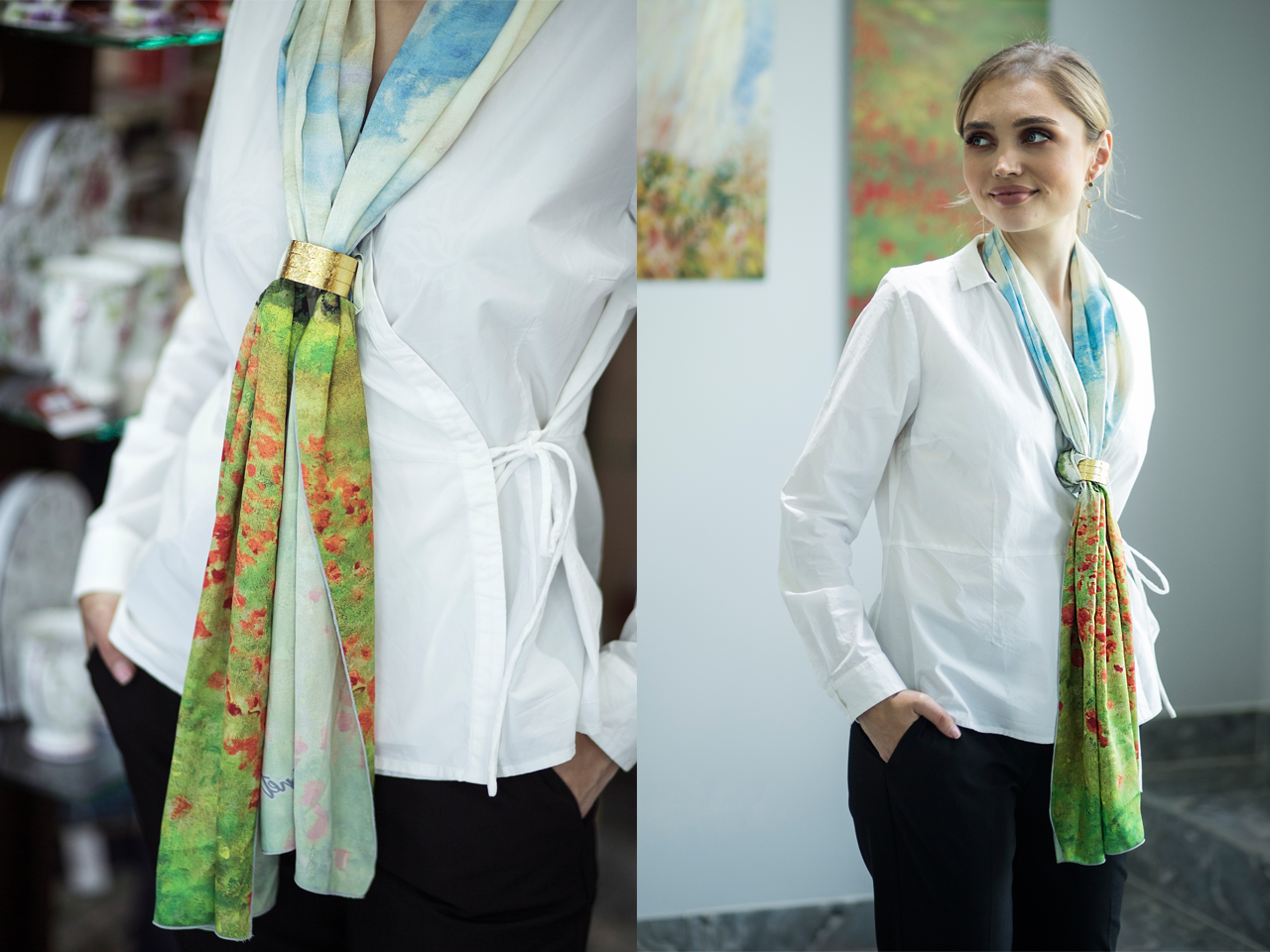 Chusty i szale marki CARMANI wykonane są z innowacyjnej tkaniny tamina szlachetna, która pozwala na wykonanie misternych wzorów przy zachowaniu jedwabistego dotyku.