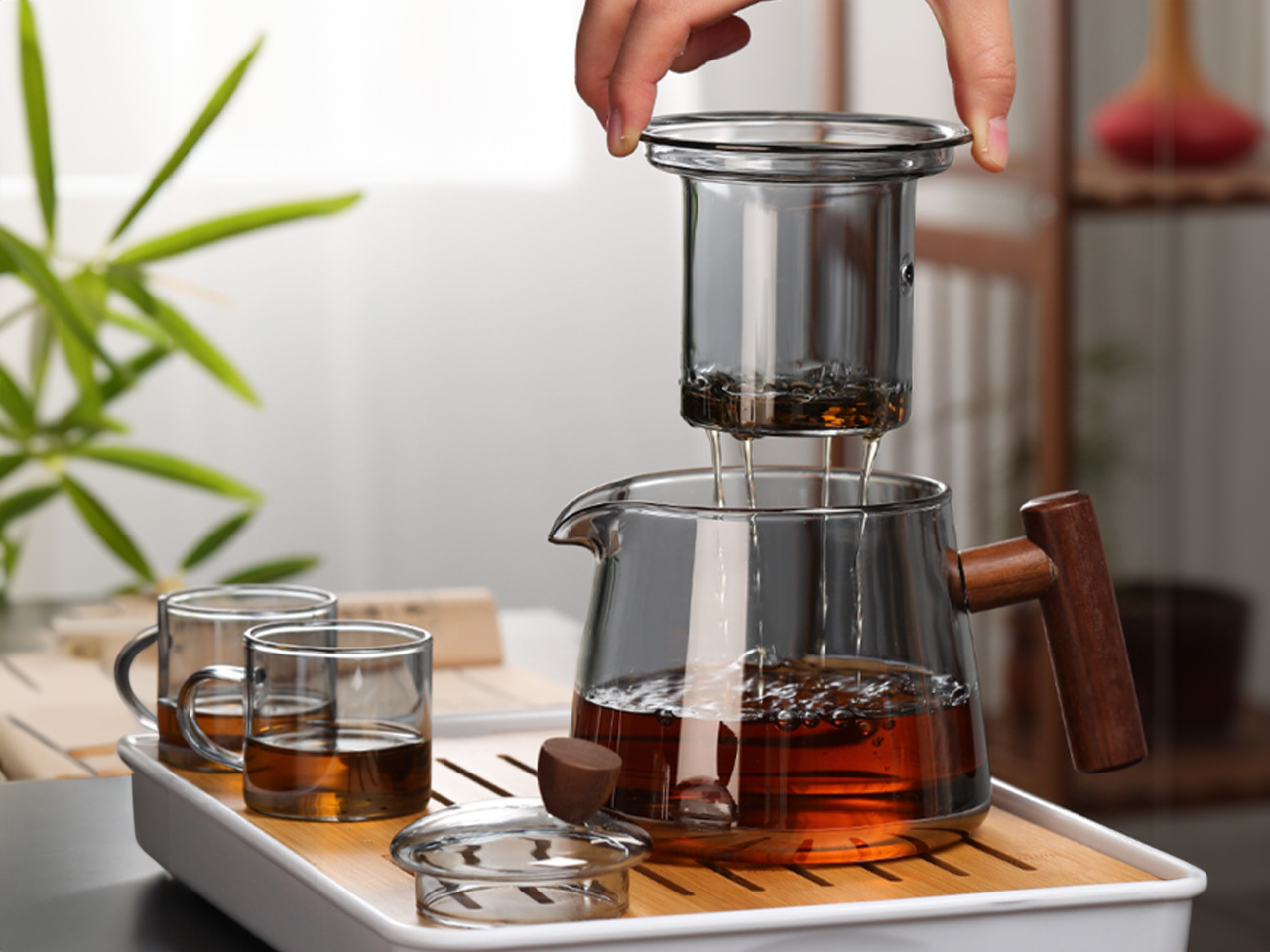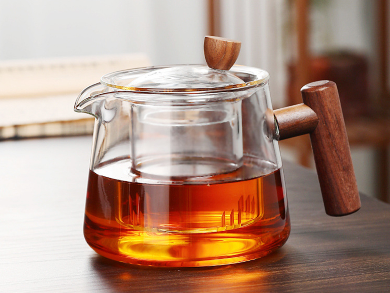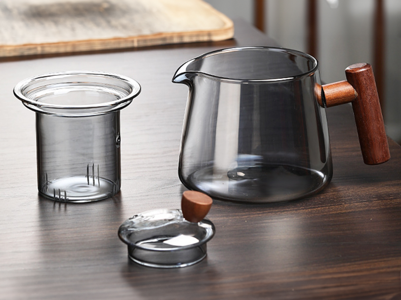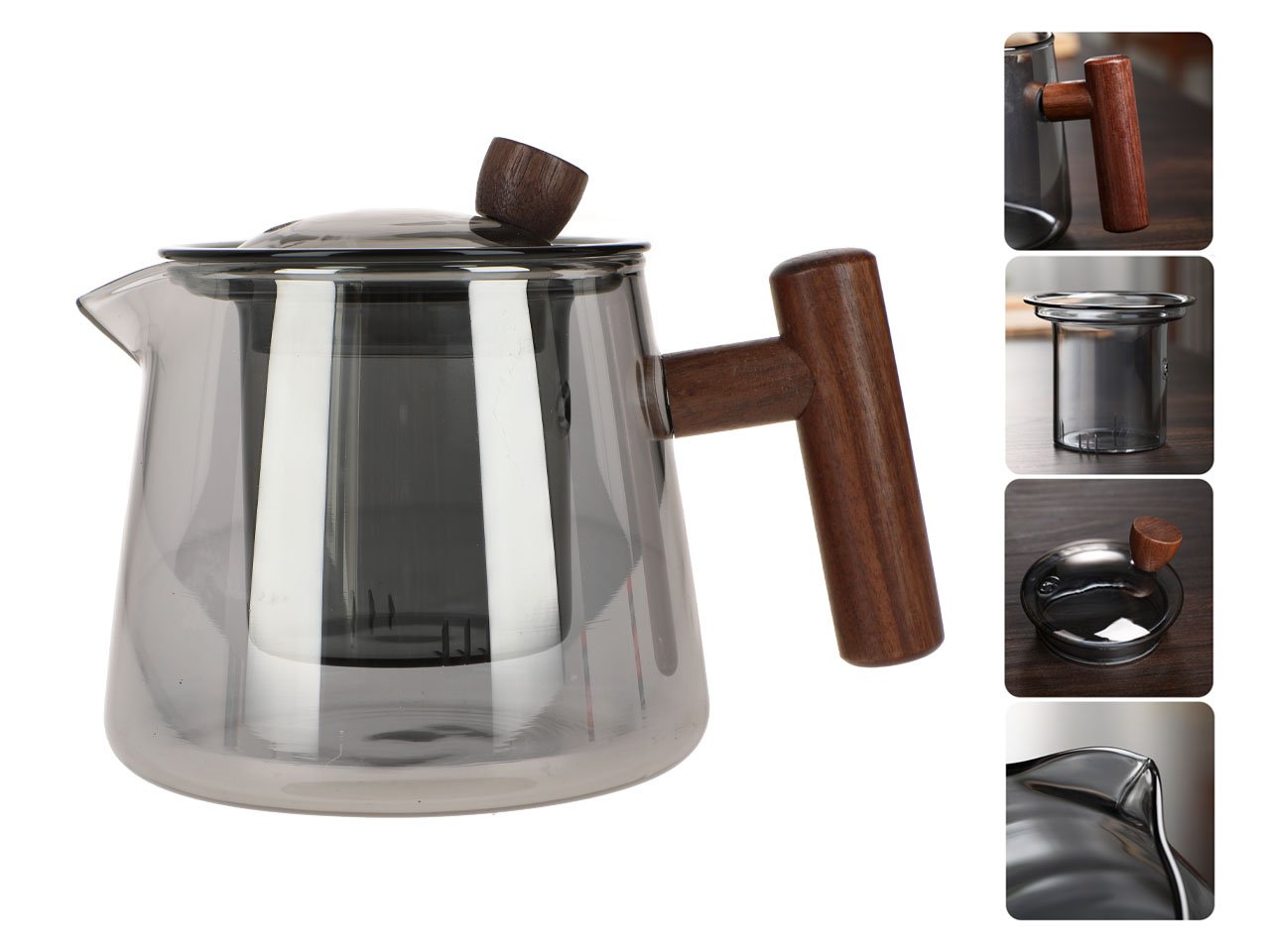 Szklany czajnik z zaparzaczem. Świetny do codziennego użytku, ale również dobrze się prezentuje podając go gościom na stół.