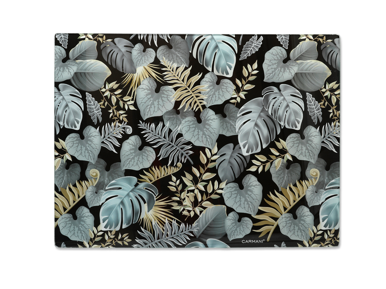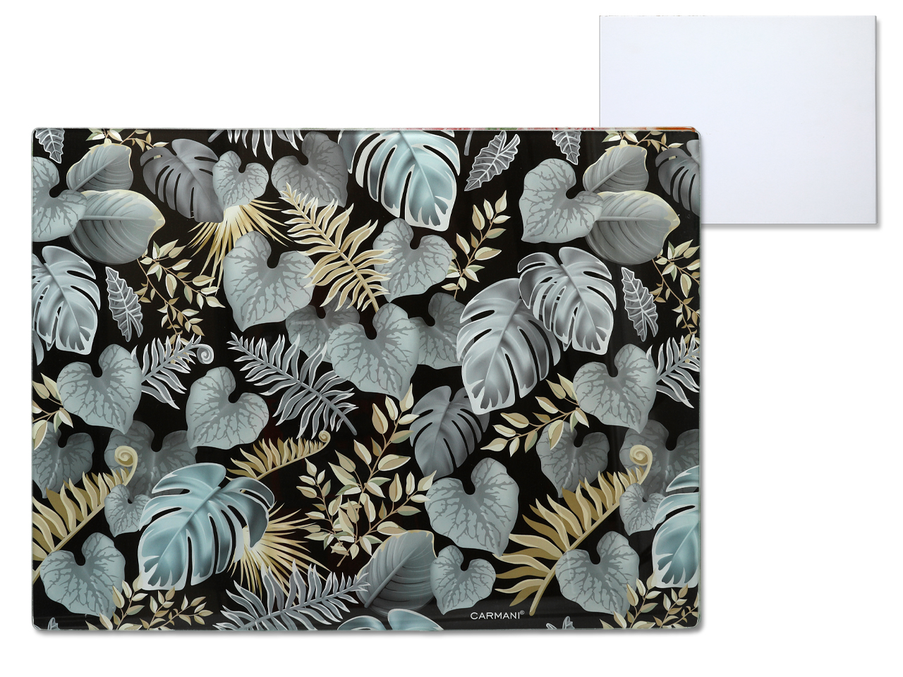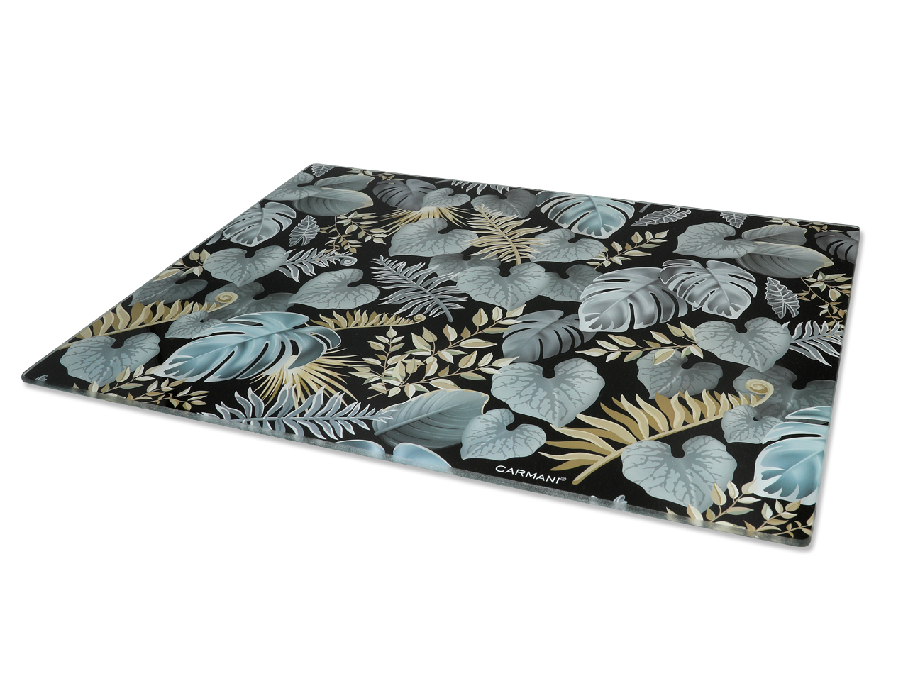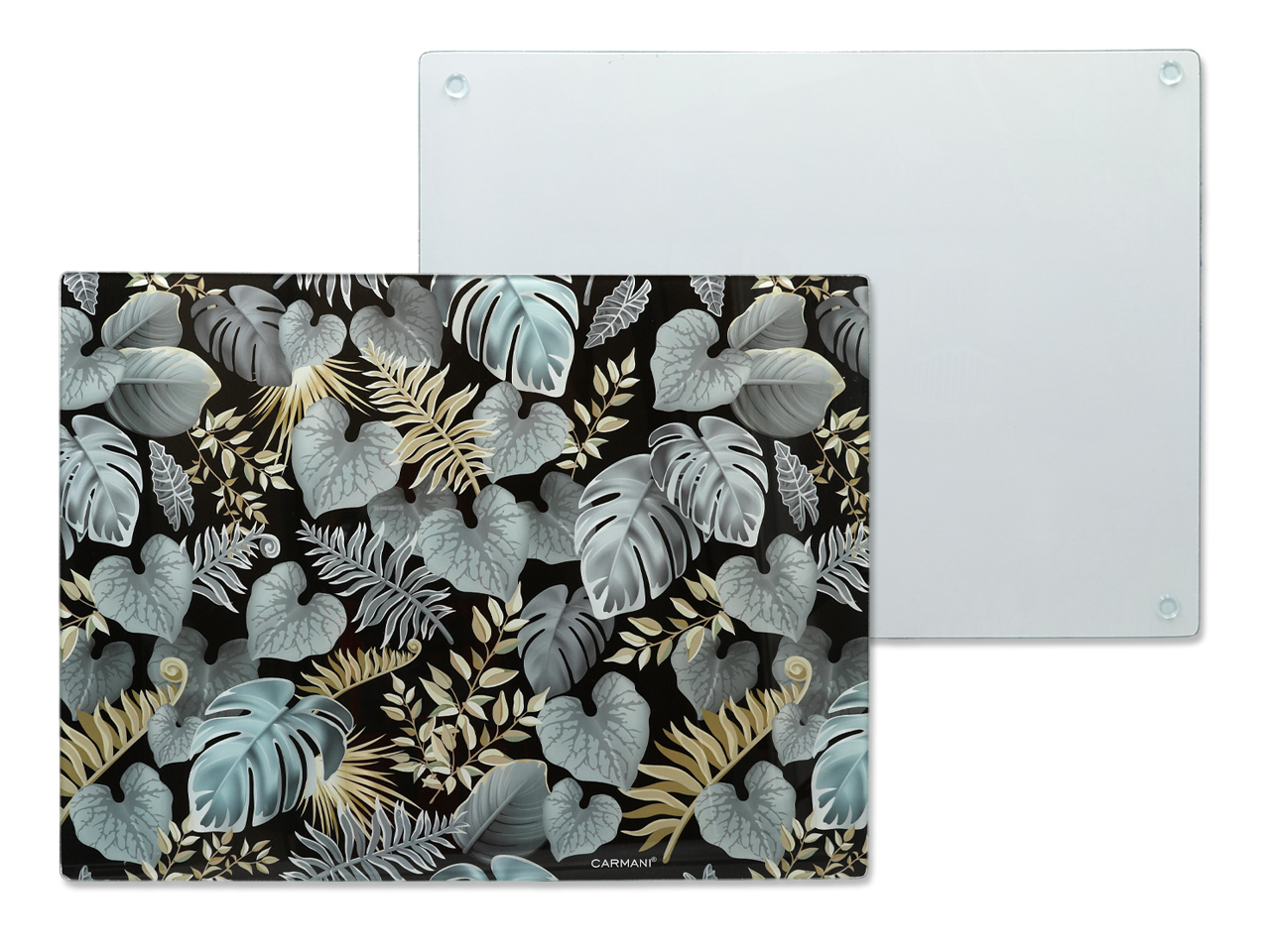 Gładka, błyszcząca tafla deski szklanej to doskonałe tło dla pięknych, kwiatowych dekoracji – bo kto powiedział, że produkty praktyczne, jak deska szklana nie mogę być piękne?