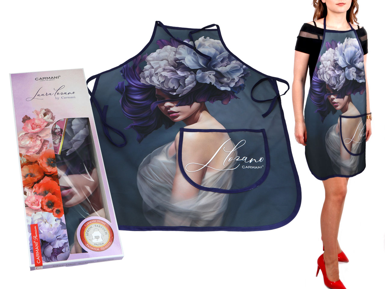 Fartuszek kuchenny – L. Lozano, Kwiaty na głowie (CARMANI)