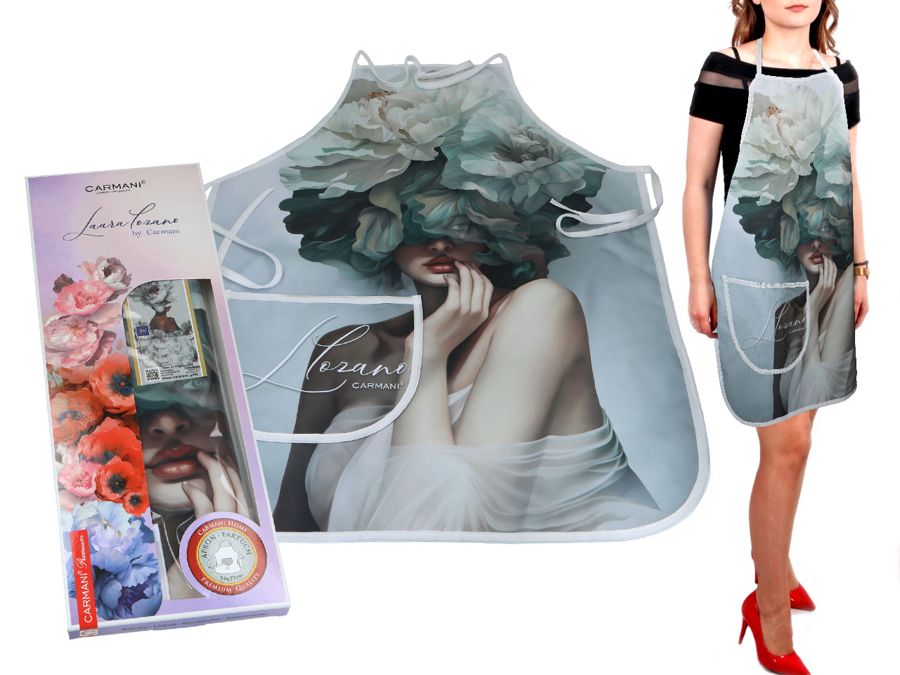Fartuszek kuchenny – L. Lozano, Kwiaty na głowie (CARMANI)