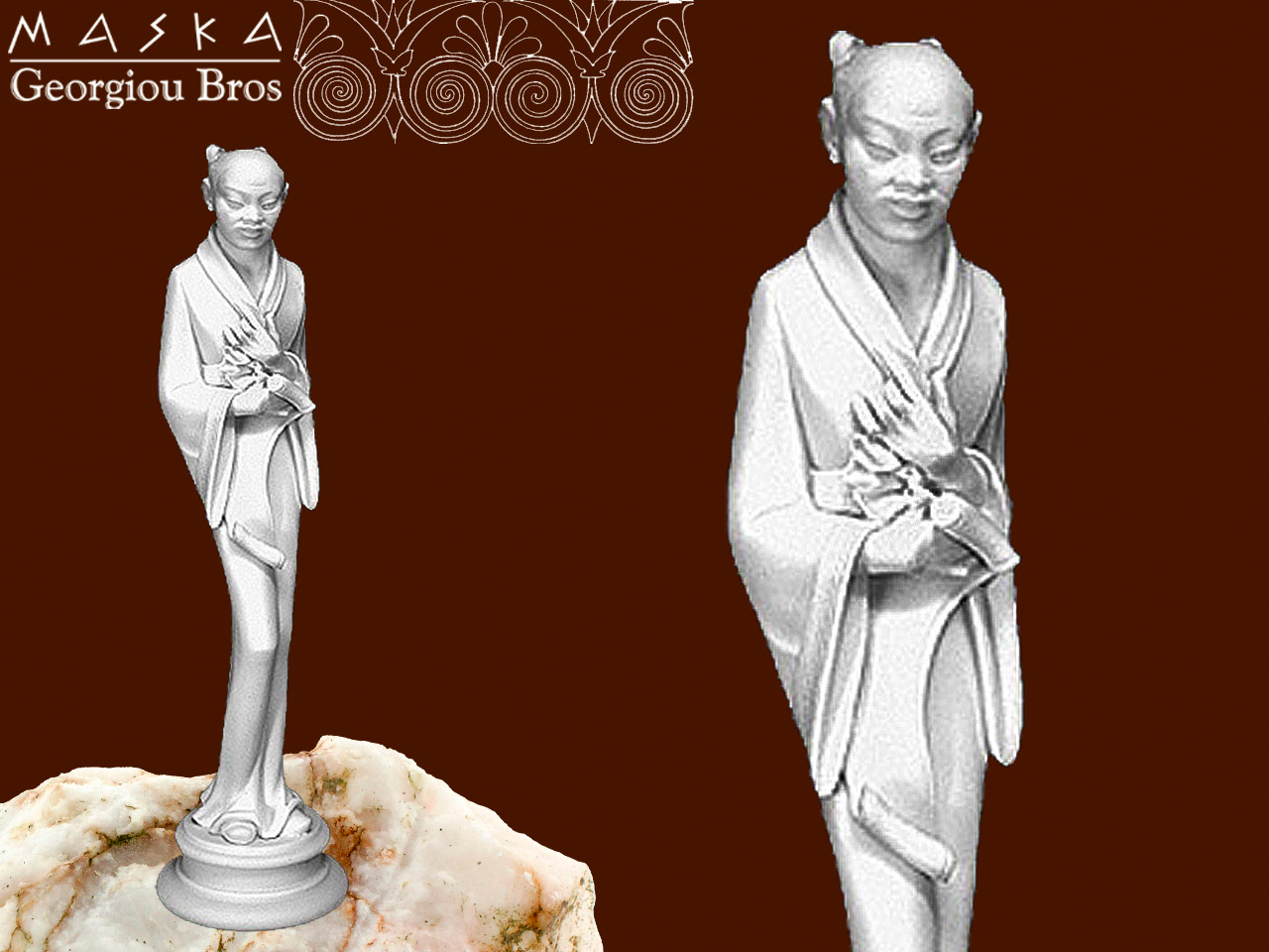Alabastrowa figurka przedstawiająca Japończyka w tradycyjnym stroju. Już od czasów starożytnych alabaster był wysoko cenionym kamieniem ozdobnym i dekoracyjnym. Niezliczona ilość wzorów stanowi inspirację do tworzenia własnych niepowtarzalnych