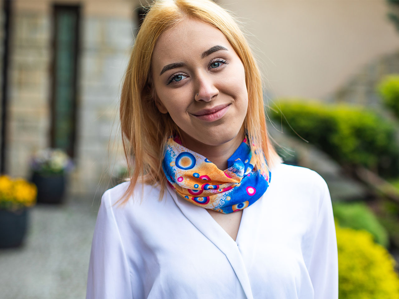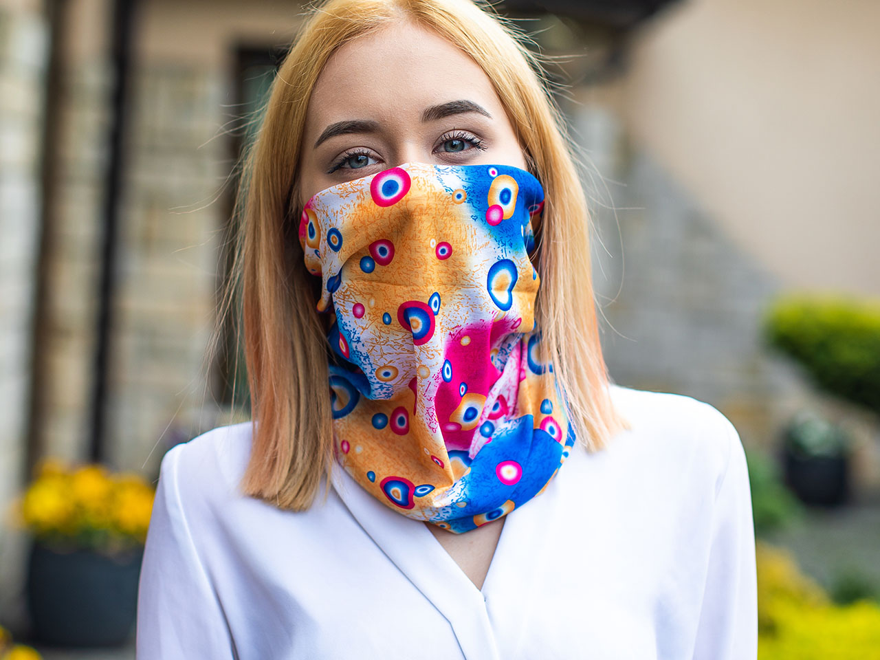 Nie lubisz maseczek? Proponujemy miękką, elastyczną i przyjemną w dotyku chustę/komin w wielu oryginalnych wzorach do wyboru. Chustę można użyć jako alternatywę maseczki – do osłony ust i nosa, ozdobę do włosów lub nosić na szyi.