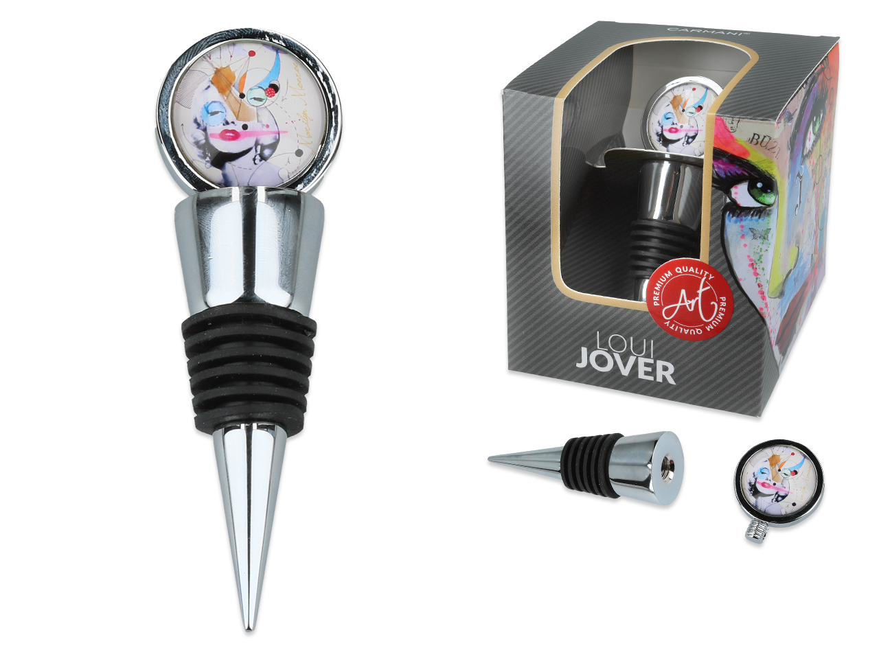 Niech każda butelka stanie się wyjątkowa. Dekoracyjny korek z motywem inspirowanym malarstwem Jovera wnosi na stół odrobinę luksusu. To nie tylko praktyczny gadżet û to detal, który podkreśla charakter spotkania i dodaje mu niepowtarzalnego klimatu.