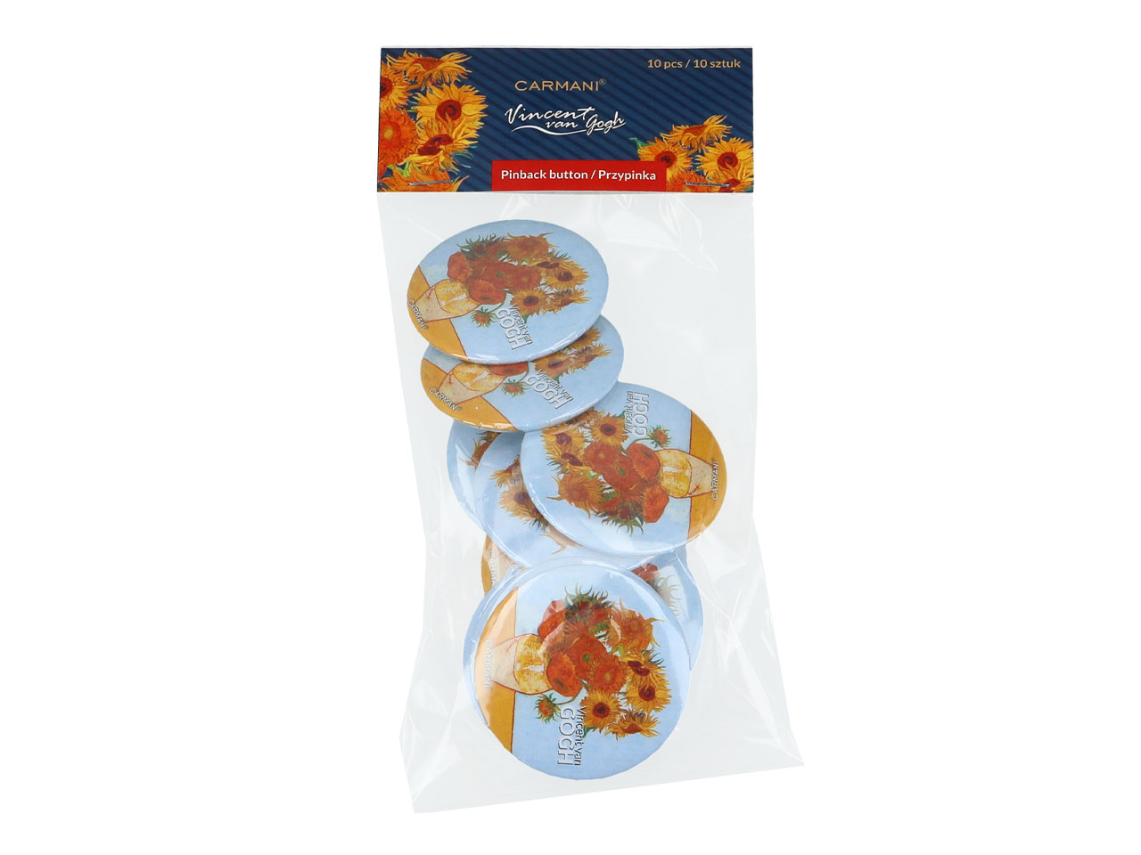 Kpl. 10 przypinek – V. van Gogh, Słoneczniki (CARMANI)