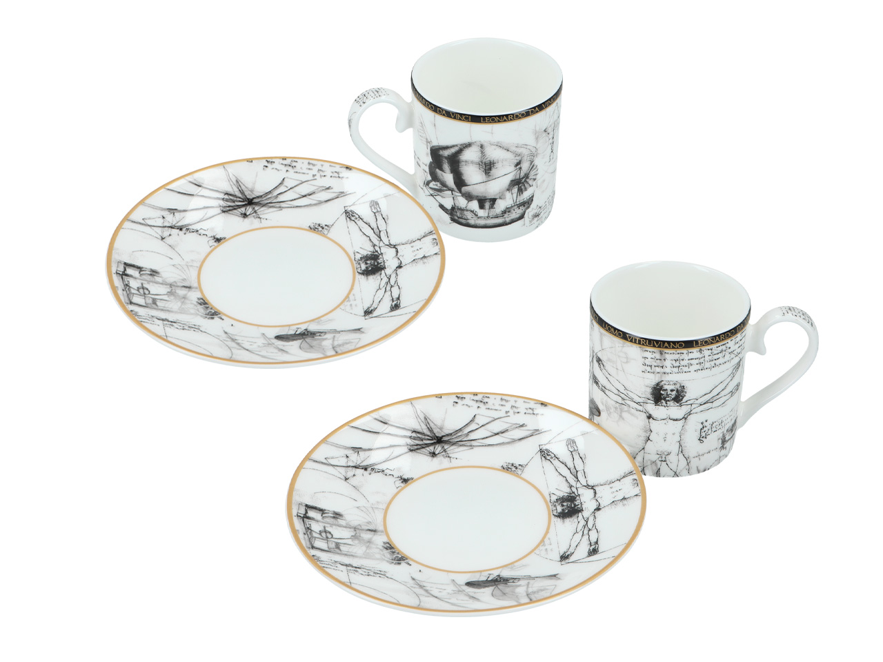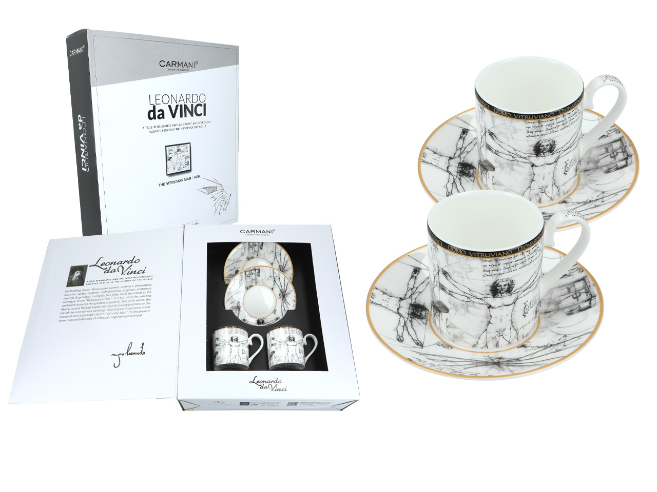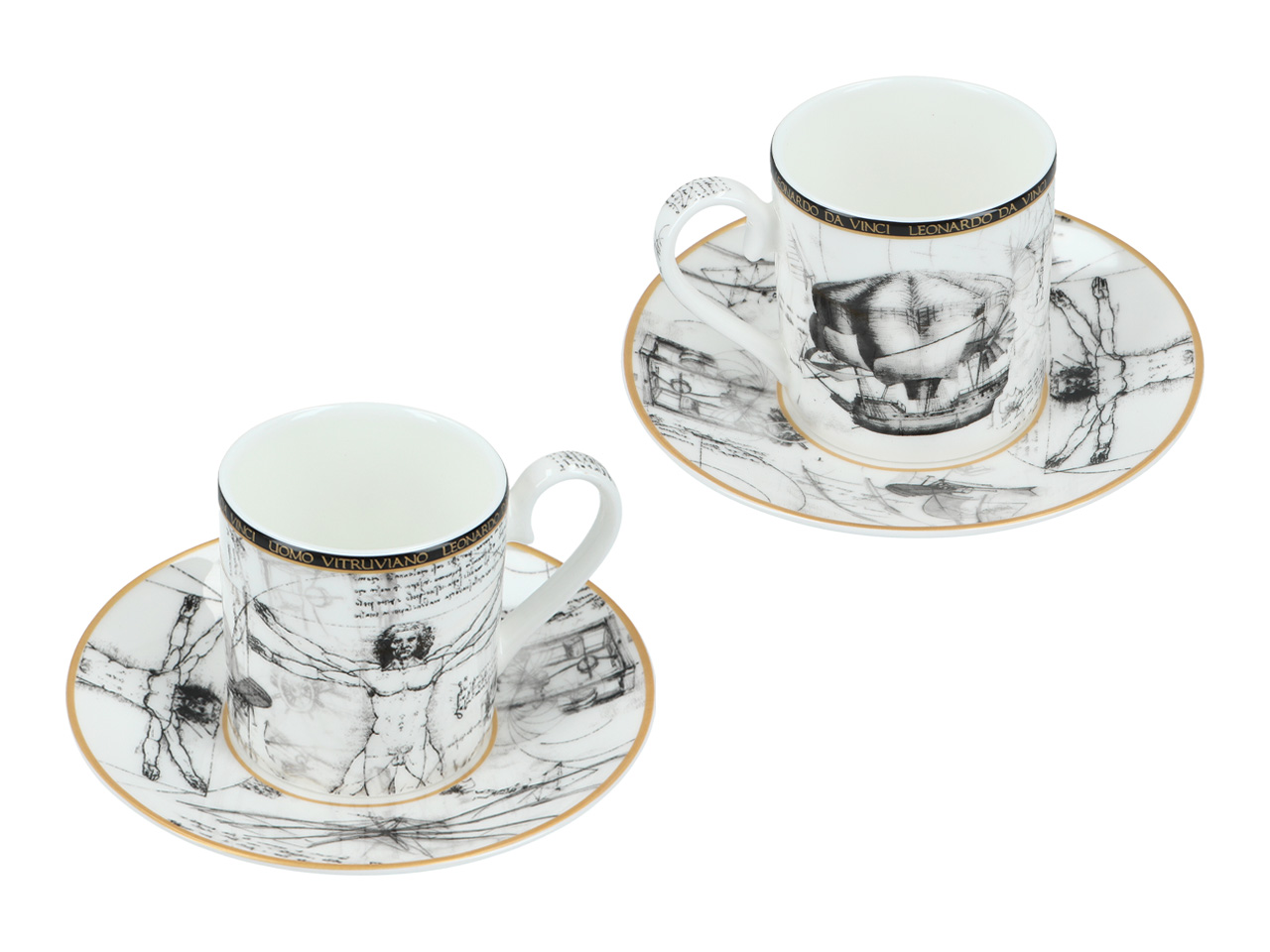 Kpl. 2 filiżanek espresso – L. Da Vinci, Człowiek Witruwiański (CARMANI)