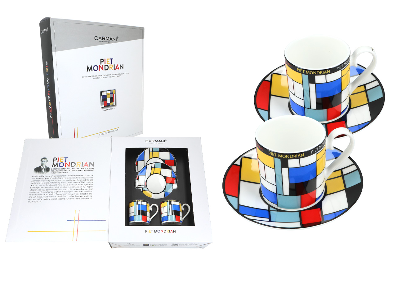 Kpl. 2 filiżanek espresso – P. Mondrian, Composition A (CARMANI)