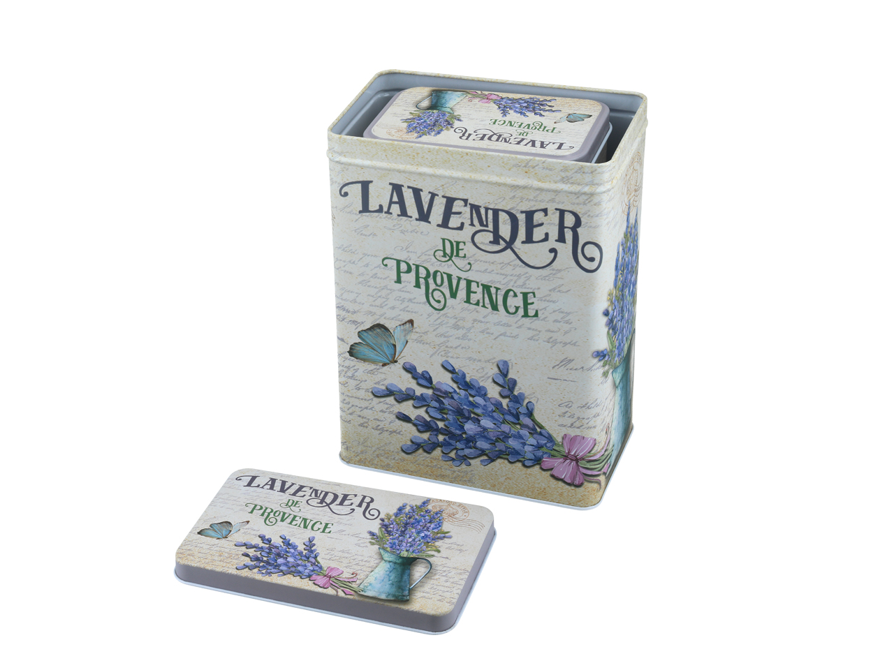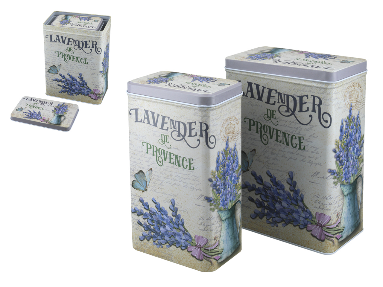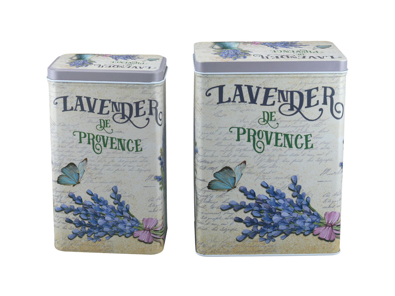 Komplet dwóch puszek z pięknym lawendowym wzorem – powiewlata w każdej kuchni.