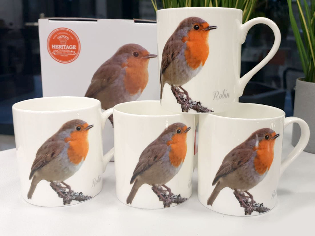 Zestaw czterech porcelanowych kubków o pojemności 295ml, każdy z unikalną kwiatową ilustracją. Kubki są trwałe, wygodne i idealne do codziennego użytku.