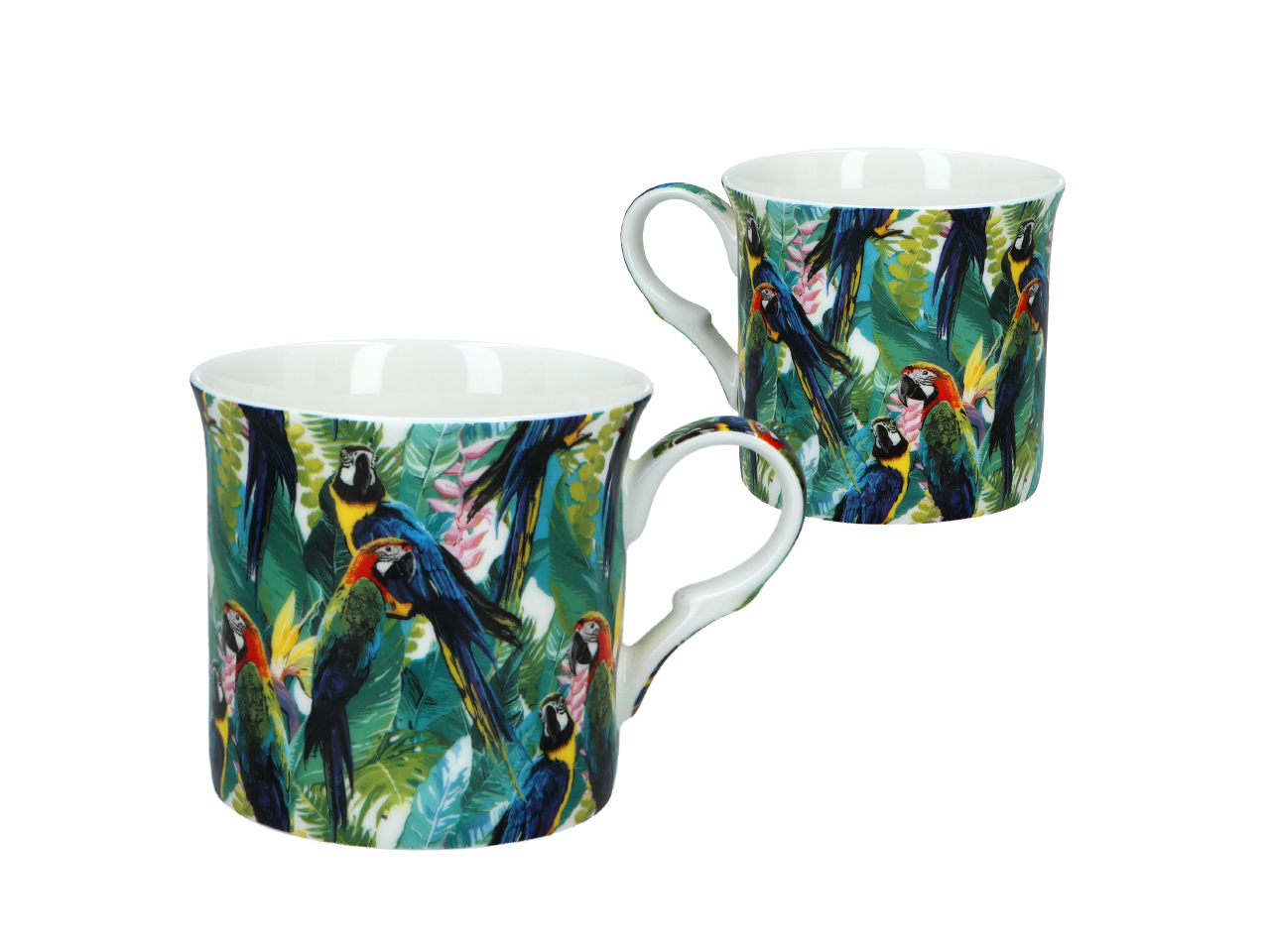 Komplet składa się z czterech kubków wykonanych z wysokiej jakości porcelany. Każdy z kubków ozdobiony jest tropikalnym motywem, przedstawiającym egzotyczne rośliny i zwierzęta.