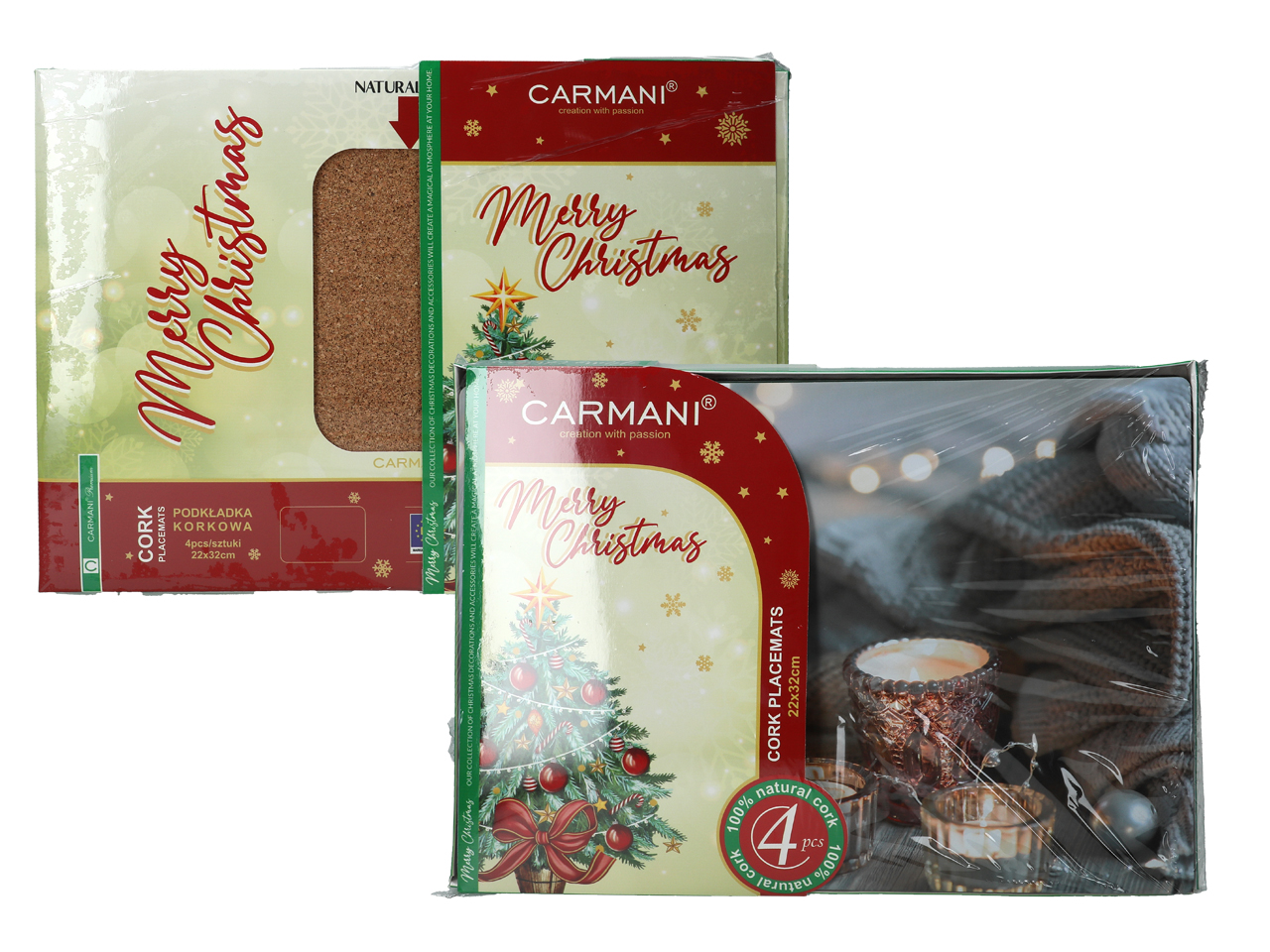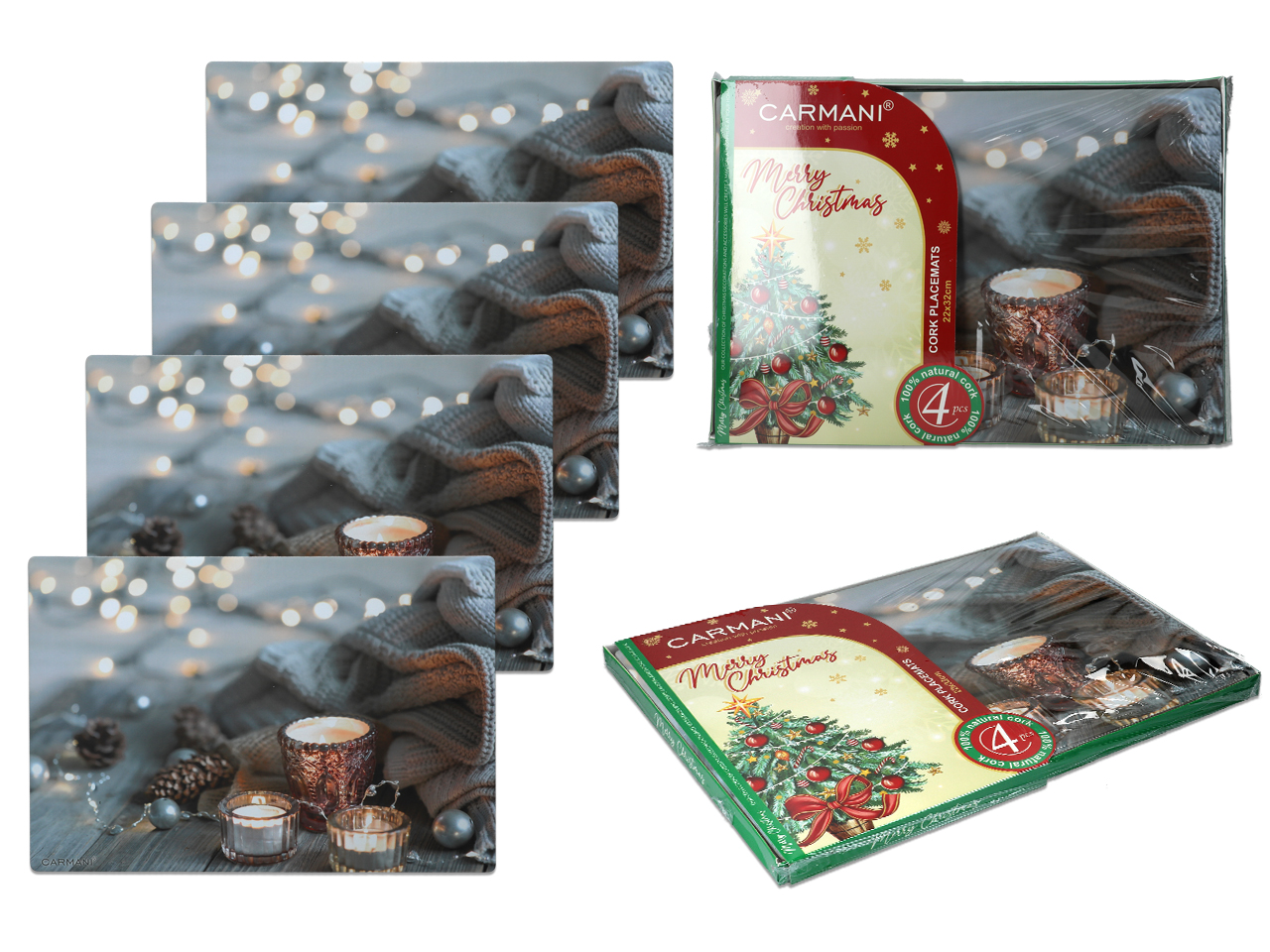 Kpl. 4 podkładek korkowych pod talerze – Boże Narodzenie (CARMANI)