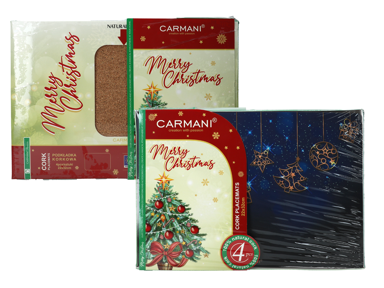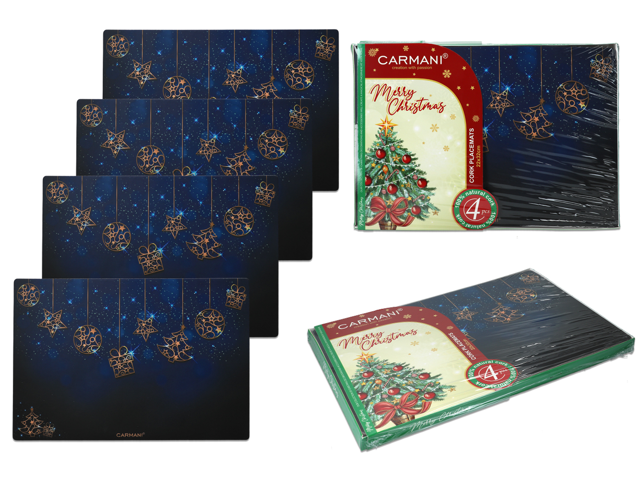 Kpl. 4 podkładek korkowych pod talerze – Boże Narodzenie (CARMANI)