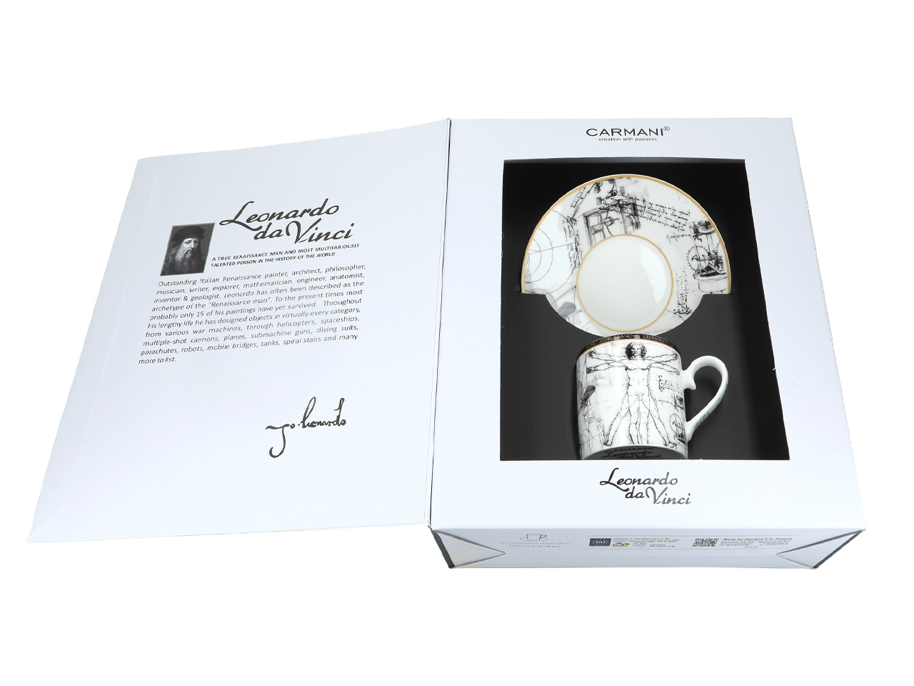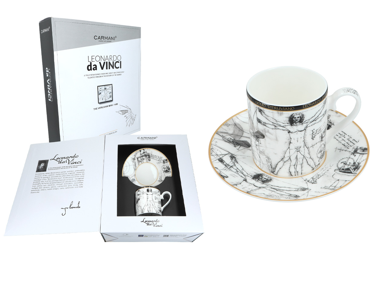 Kpl. Filiżanka ze spodkiem – L. Da Vinci, Człowiek Witruwiański (CARMANI)