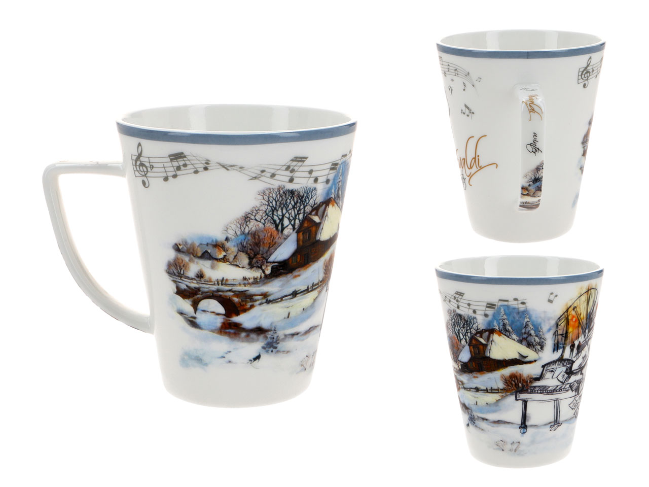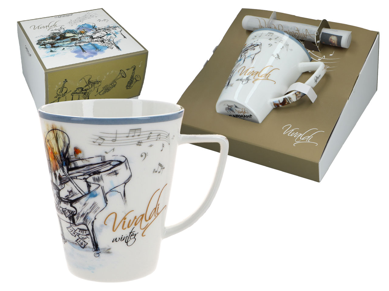 Rozkoszuj się chwilą przyjemności z naszym eleganckim kubkiem, dekoracja inspirowana twórczością Antonio Vivaldiego. Subtelne, minimalistyczne linie na białym tle przedstawiają piękno Czterech Pór Roku, tworząc wyjątkowy i ponadczasowy design.