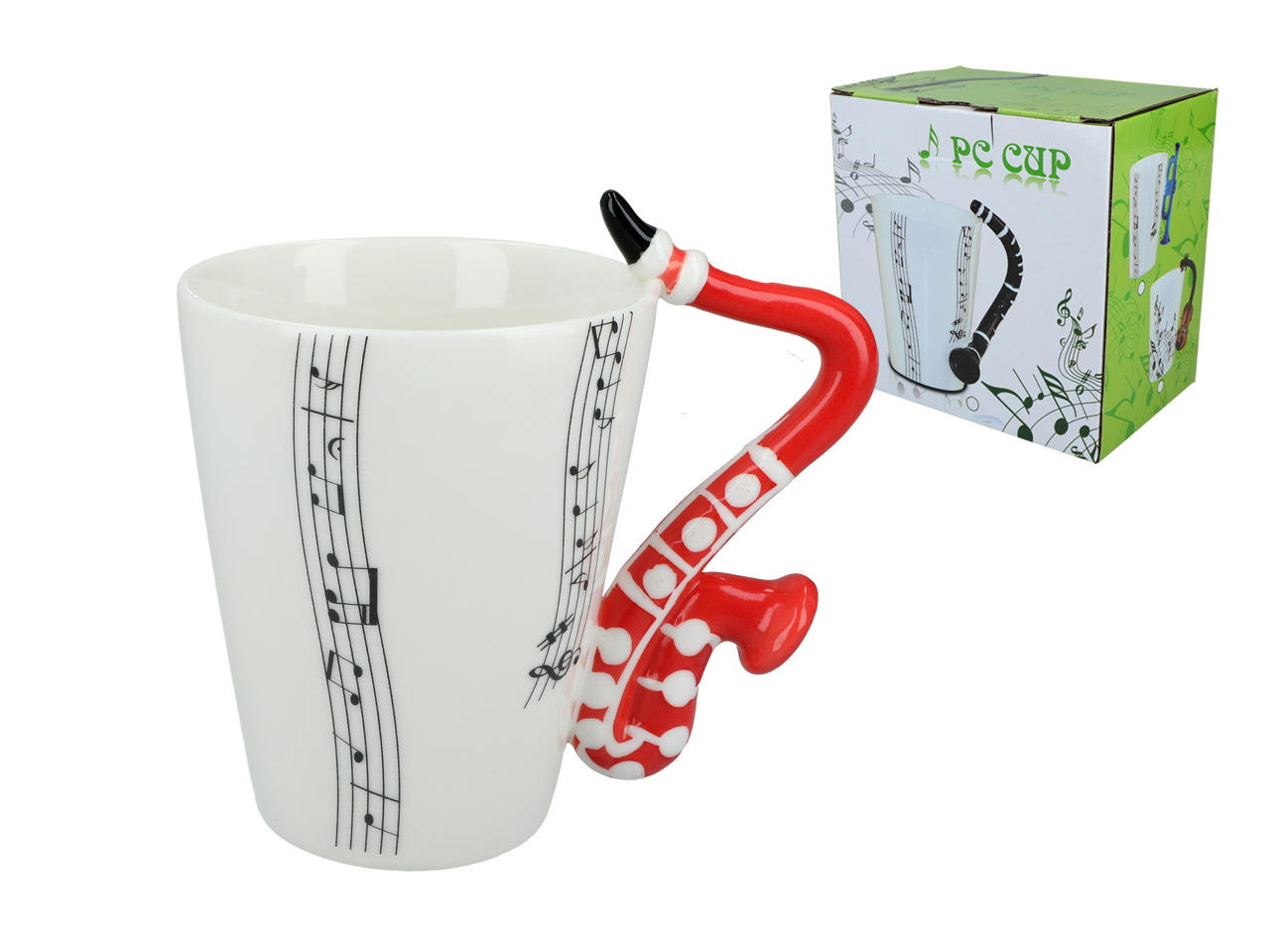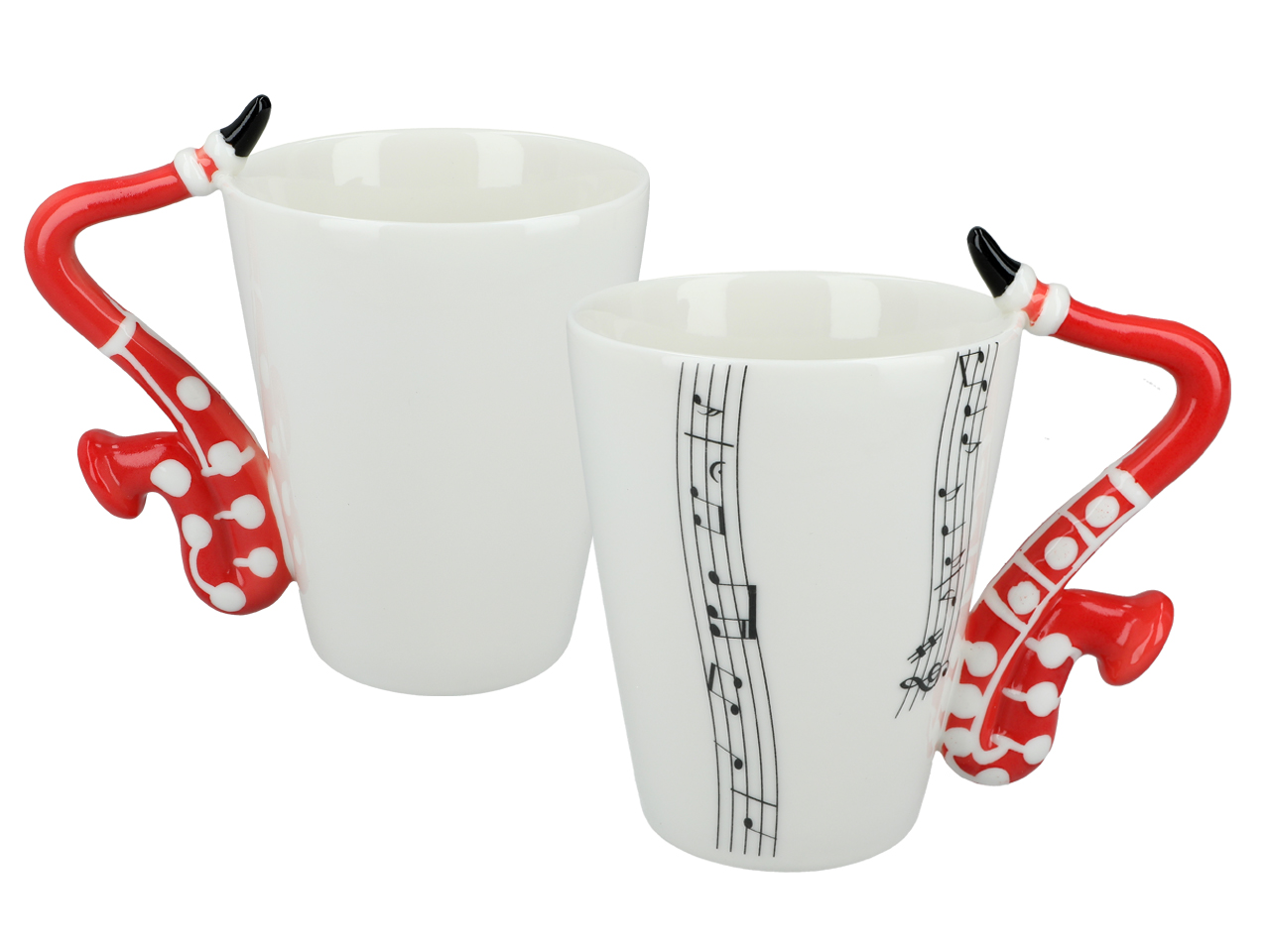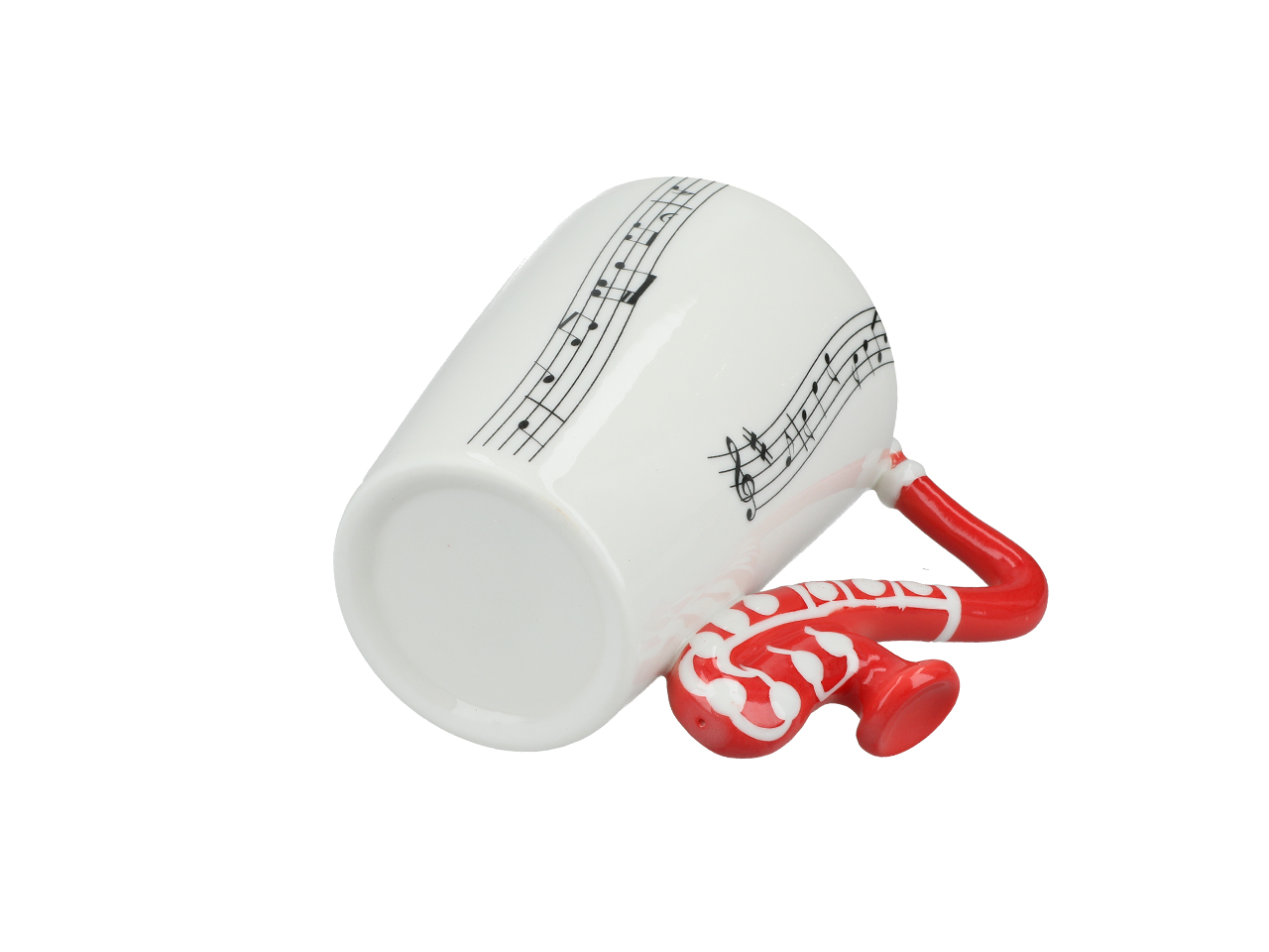 Kubeczek jest wykonany z białej porcelany, ozdobiony pięknym motywem muzycznym. Całość wykończona jest w delikatnym połysku, co sprawia, że kubeczek wygląda bardzo elegancko i atrakcyjnie.