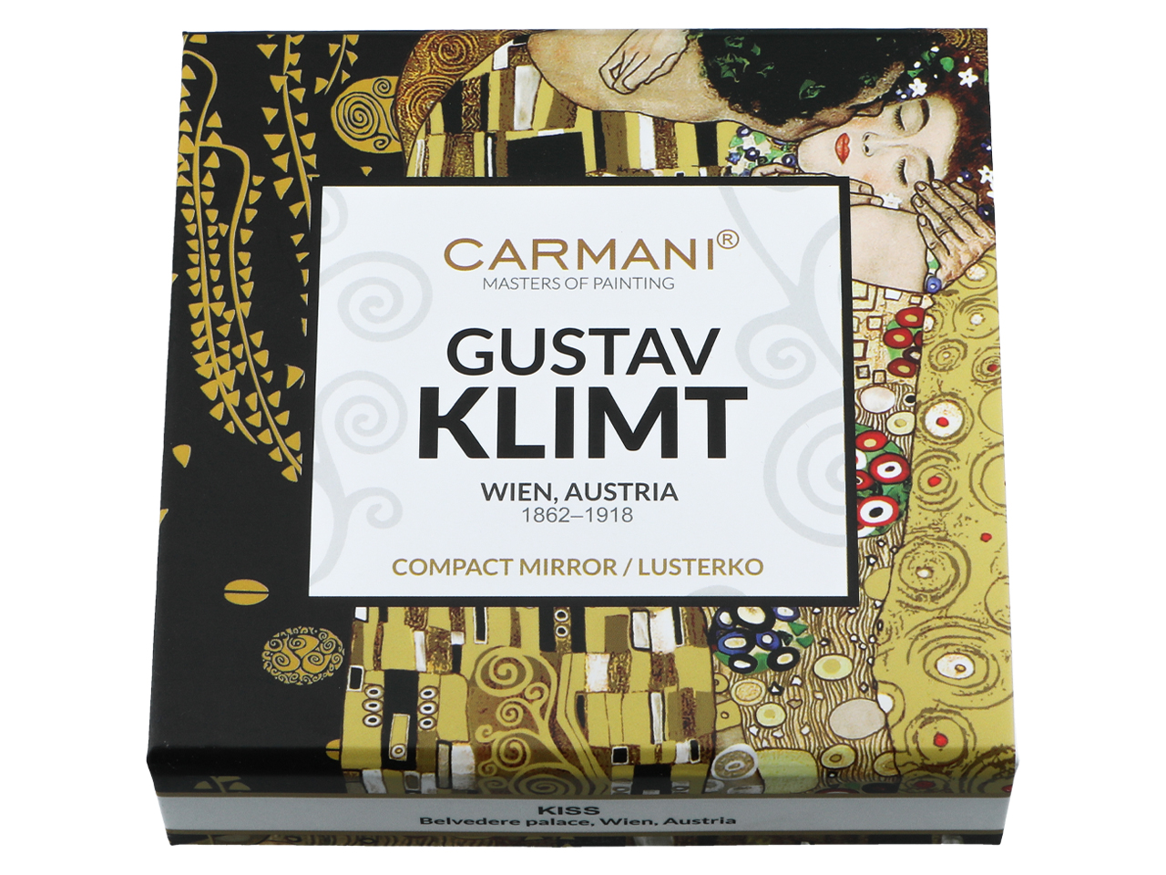 Urocze, małe lustereczko z motywem twórczości Gustava Klimta. Doskonałe do każdej kobiecej torebki. Zajmuje mało miejsca a jego piękne zdobienia dodają uroku.
