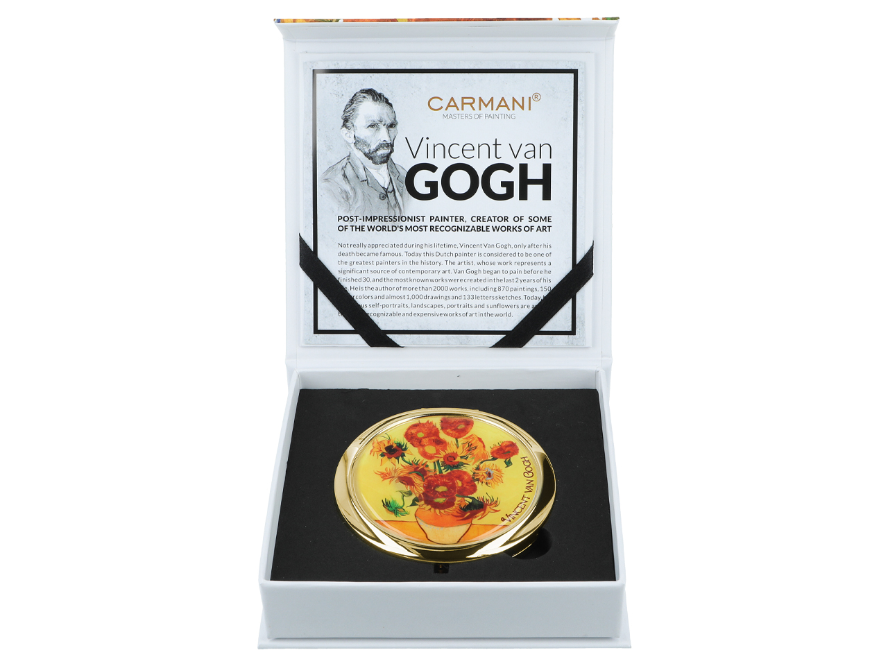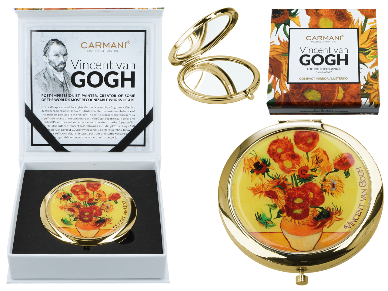 Urocze, małe lustereczko z motywem twórczości Vincenta van Gogha. Doskonałe do każdej kobiecej torebki. Zajmuje mało miejsca a jego piękne zdobienia dodają uroku.