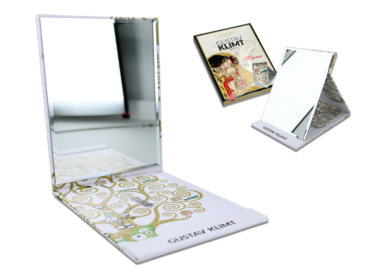 Lusterko w etui – G. Klimt, Pocałunek i Drzewo życia (CARMANI)