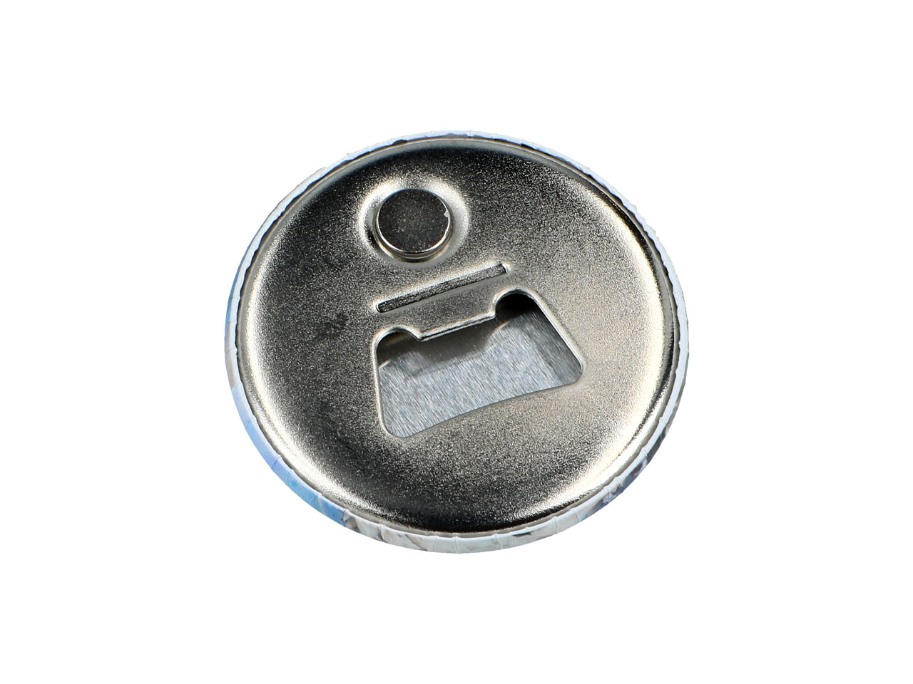 Okrągły otwieracz do butelek z magnesem, dzięki któremu możemy przyczepić go do metalowych powierzchni i jest zawsze pod ręką.