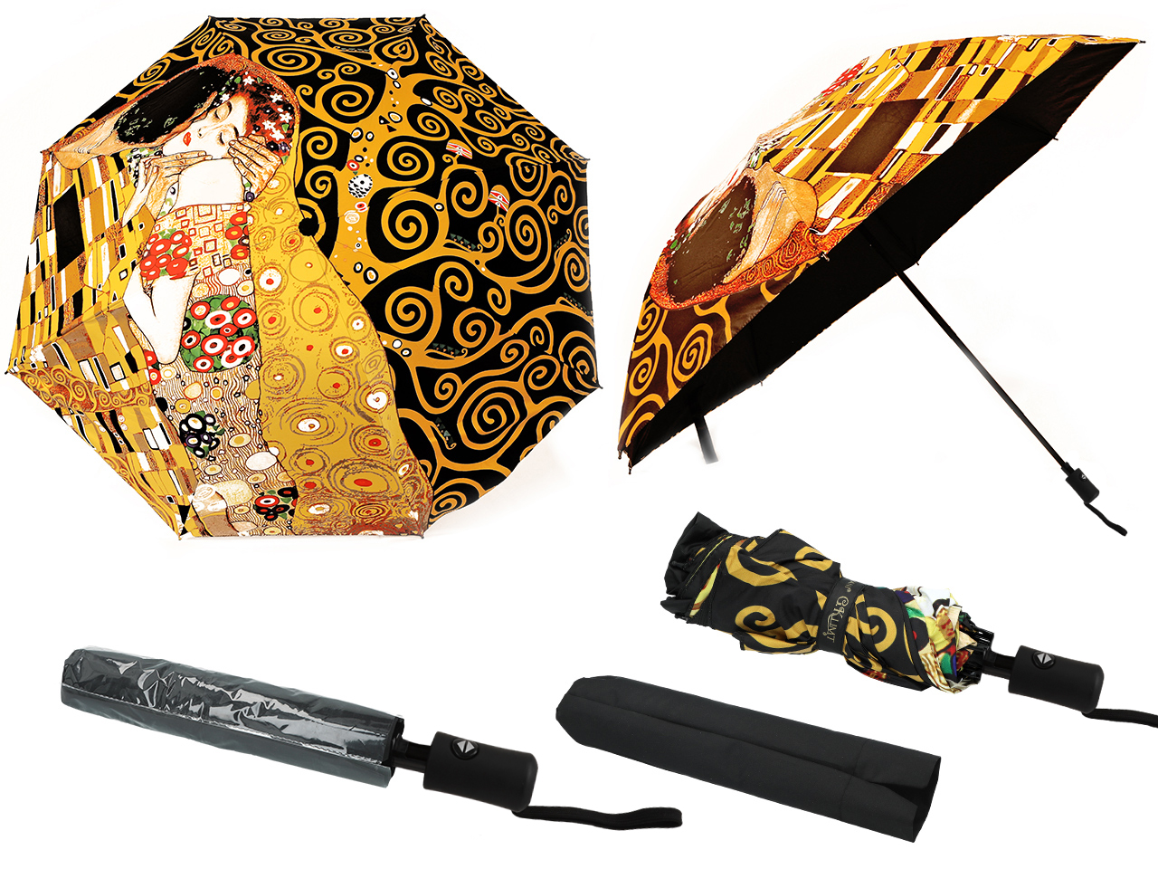 Parasol automatyczny, składany – G. Klimt, Pocałunek i Drzewo życia (dekoracja na wierzchu) (CARMANI