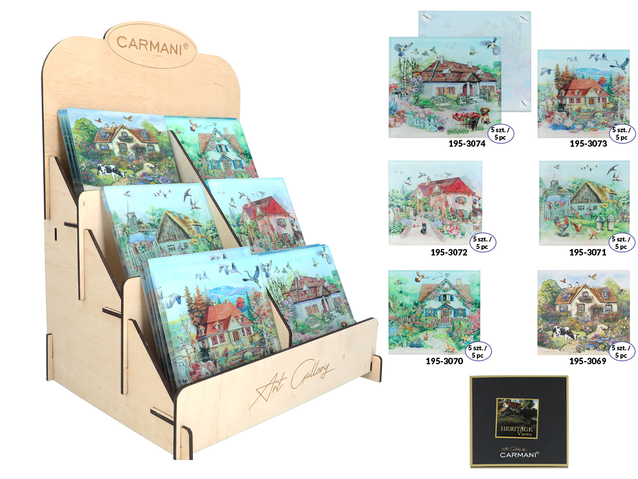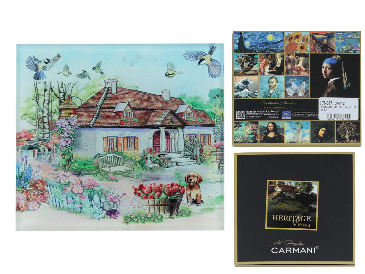 Gustowna, kwadratowa podkładka pod kubek ozdobiona sielskim, wiejskim krajobrazem przyda się nie tylko w domach na wsi.