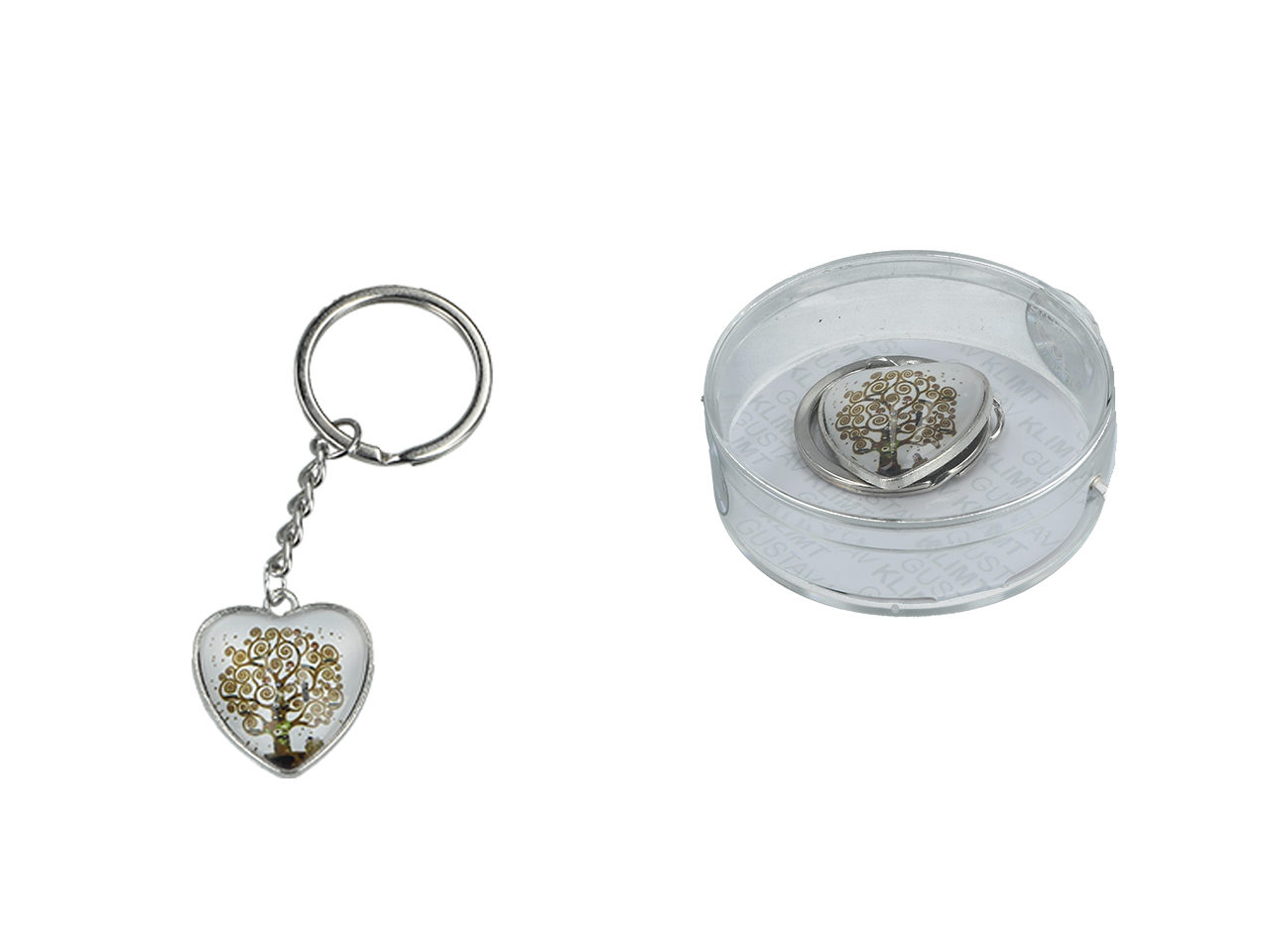 Przywieszka do torebki/Breloczek do kluczy serce – G. Klimt, Drzewo życia (białe tło) (CARMANI)