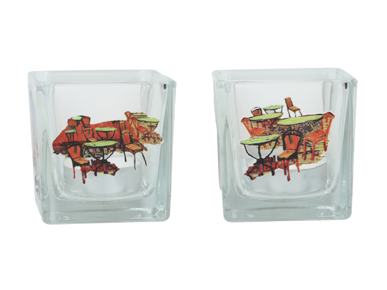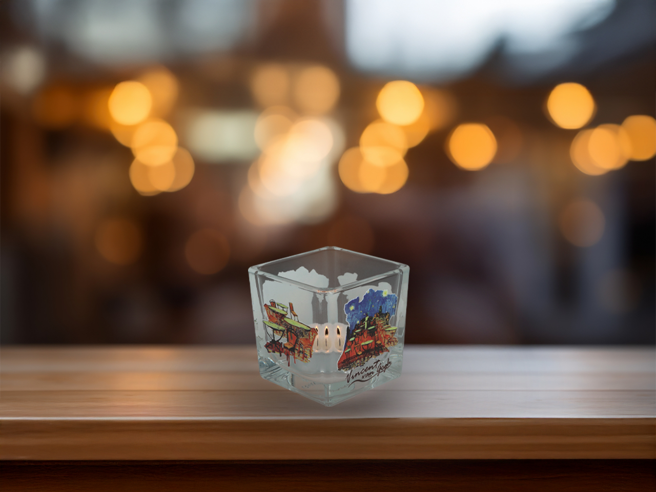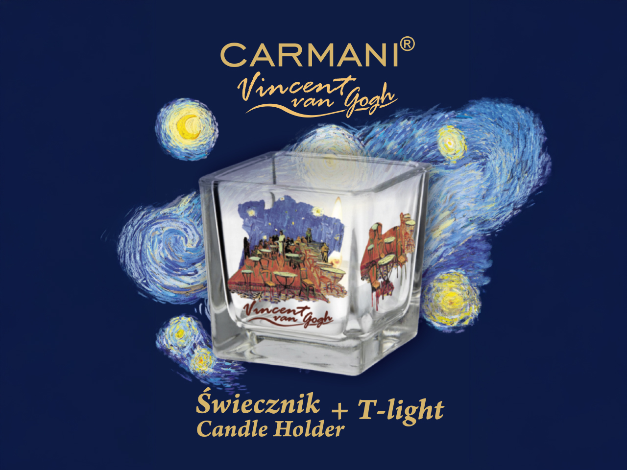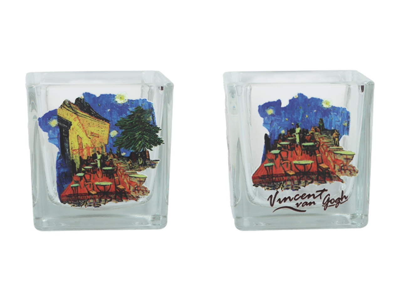 Świecznik szklany + tealight – V. van Gogh, Taras Kawiarki w Nocy (CARMANI)