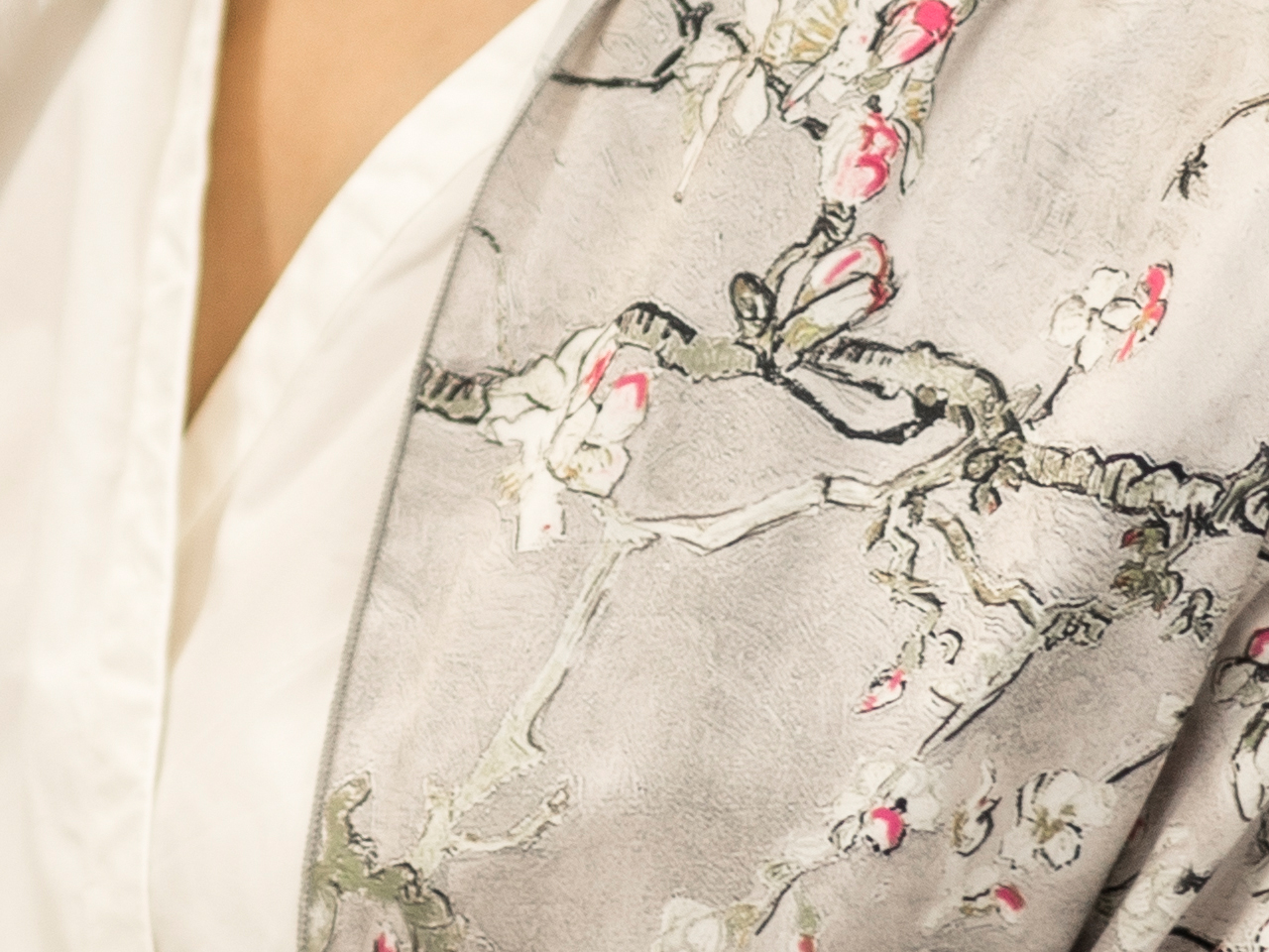Szal – V. van Gogh, Kwitnący Migdałowiec, srebrny (CARMANI)