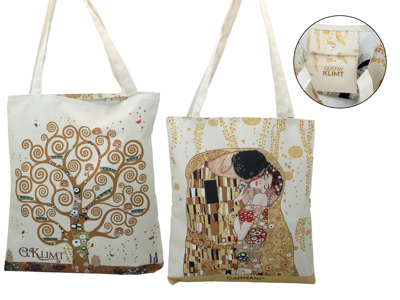 Torba na ramię – G. Klimt, Pocałunek + Drzewo, jasne tło (CARMANI)